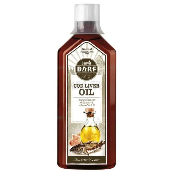 Canvit BARF este un ulei de cod norvegian și este o sursă naturală de acizi grași nesaturați Omega-3, vitamina A și D.