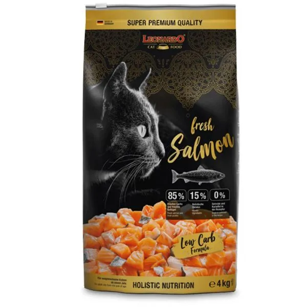 Carnea proaspătă Leonardo este o hrană super premium fără cereale făcută din carne proaspătă de somon pentru pisici adulte.