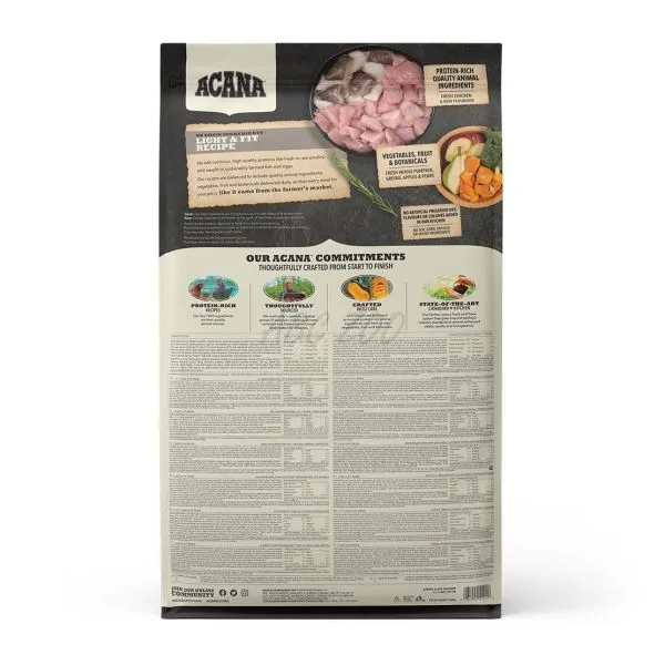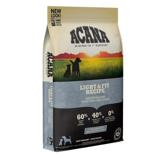 Acana Dog Light & Fit 11,4 kg este o hrană completă pentru câini adulți indiferent de talie și rasă. Reduce riscul de obezitate și diabet și susține sănătatea perfectă a câinelui dumneavoastră.