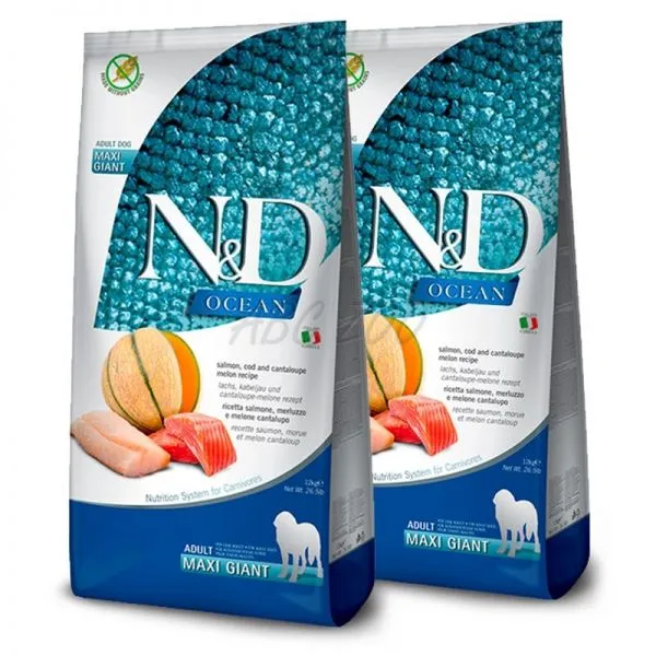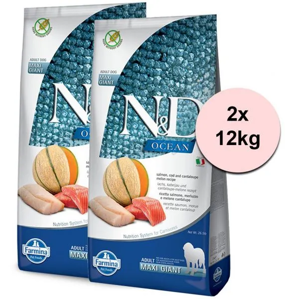 Farmina N&D dog OCEAN adult giant maxi, somon, cod & pepene galben 2 x 12 kg