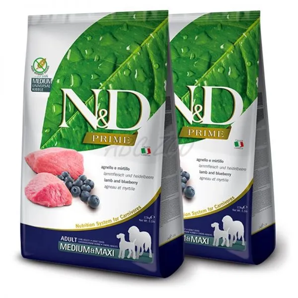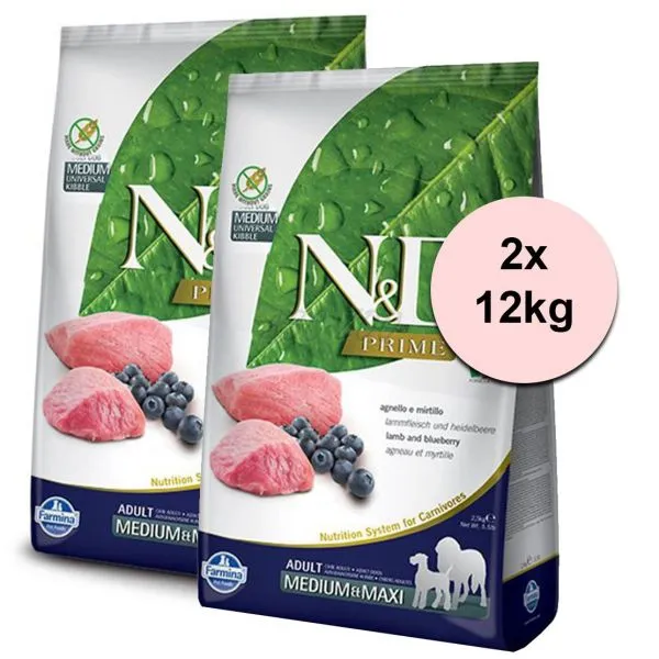 Farmina N&D Prime dog GF MEDIUM & MAXIMiel și afine 2 x 12 kg
