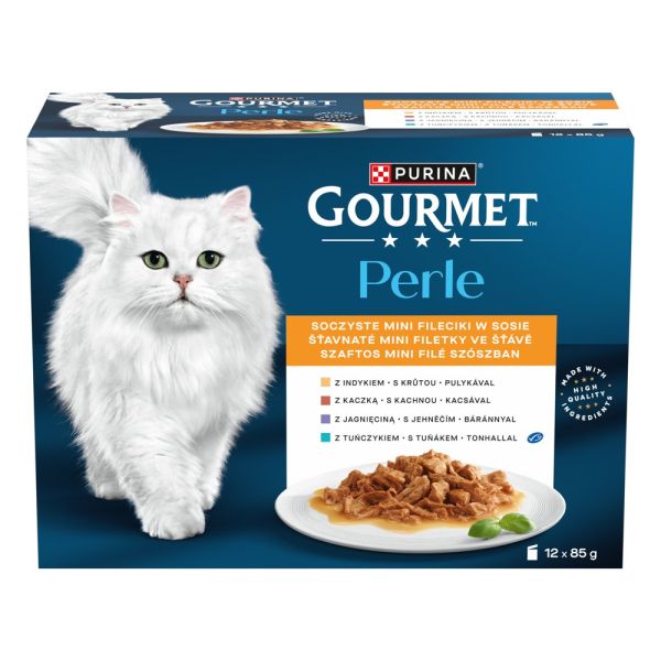Fileurile GOURMET™ Perle Mini în suc sunt făcute din ingrediente atent selectate, ușor gătite pentru a păstra gustul excelent, tăiate în bucăți delicate și servite în suc delicios pentru a satisface gustul rafinat al pisicii tale.