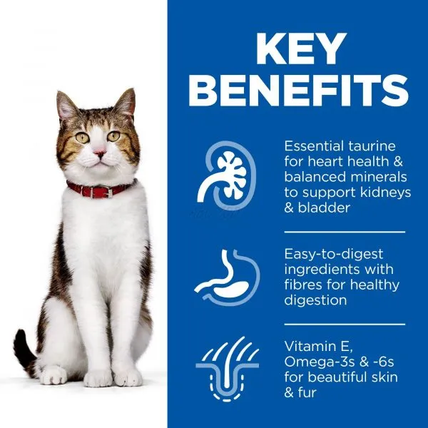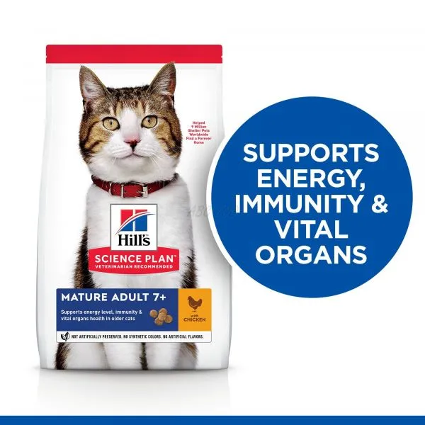 Hrana uscată pentru pisici HILL'S SCIENCE PLAN Mature Adult susţine îmbătrânirea graţioasă a pisicilor. Oferă un amestec sinergic de ingrediente pentru a ajuta la susţinerea nivelului de activitate şi energie.