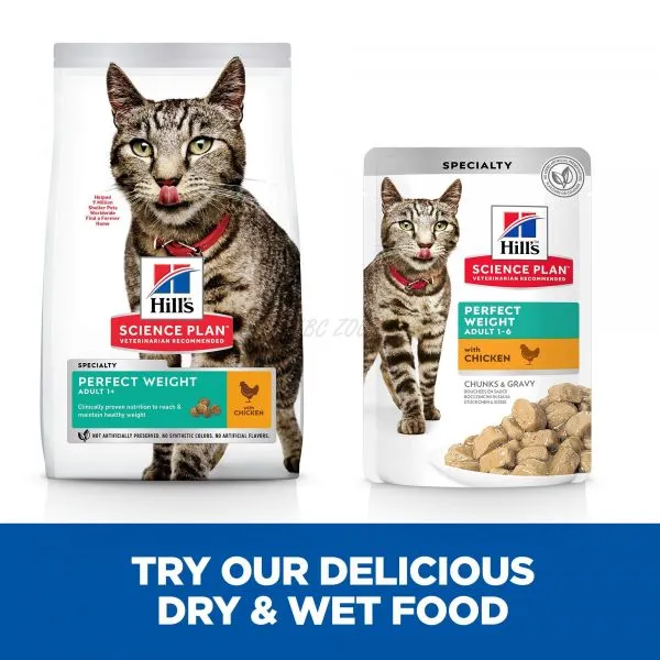 Hrana uscată pentru pisici HILL'S SCIENCE PLAN Perfect Weight este o nutriție delicioasă, inovatoare pentru controlul greutății, cu o tehnologie dovedită clinic.