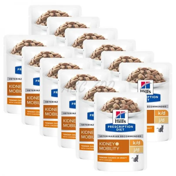 Prescription Diet k/d+Mobility Feline with Chicken Pouch - Ghid de hrănire mixt