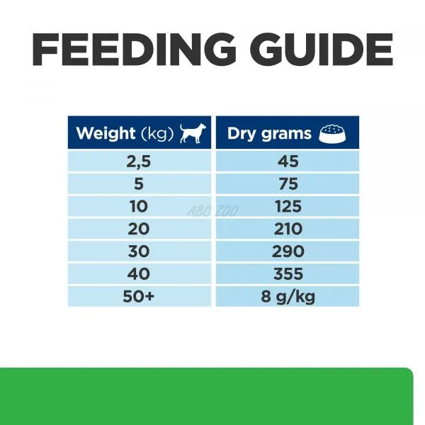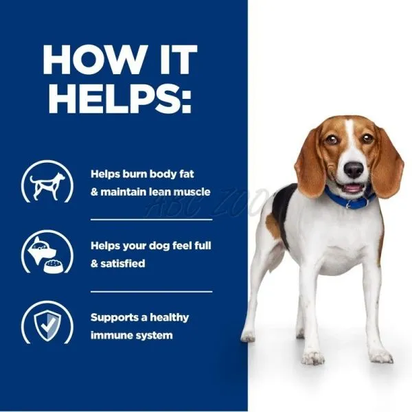 O hrană cu cantitate redusă de grăsimi, bogată în fibre, clinic dovedită pentru reducerea grăsimilor cu 22% în doar 2 luni. Special concepută pentru a potoli foamea câinelui în perioada de slăbire.