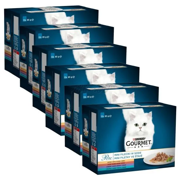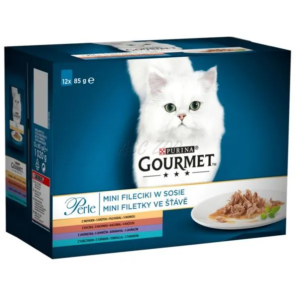 Fileurile GOURMET™ Perle Mini în suc sunt făcute din ingrediente atent selectate, ușor gătite pentru a păstra gustul excelent, tăiate în bucăți delicate și servite în suc delicios pentru a satisface gustul rafinat al pisicii tale.