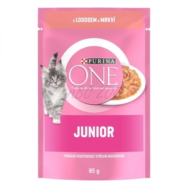 PURINA ONE JUNIOR mini filete cu somon și morcovi în suc 6 x 85 g