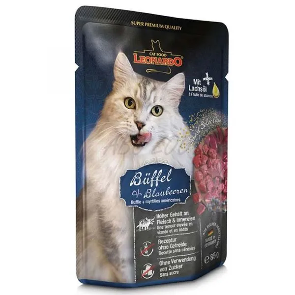 Hrană completă fără cereale pentru pisici adulte, cu carne de bivol gustoasă și merisoare sănătoase.