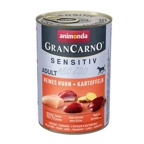 Animonda GranCarno Sensitiv Adult este o hrană la conservă cu pui și cartofi pentru câini adulți de toate rasele cu digestie sensibilă.