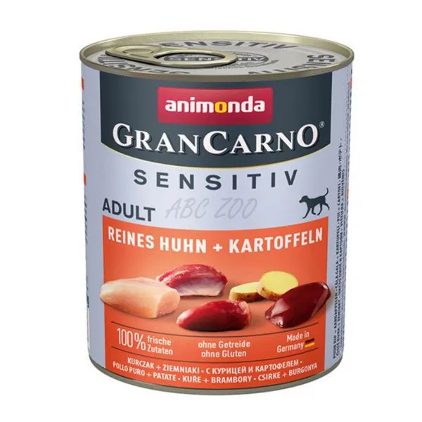 Animonda GranCarno Sensitiv Adult este o hrană la conservă cu pui și cartofi pentru câini adulți de toate rasele cu digestie sensibilă.
