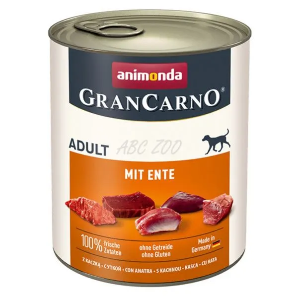 Animonda GranCarno Original Adult este o hrană la conservă, echilibrată cu carne de porc și rață pentru câini adulți (1-6 ani) de toate rasele.