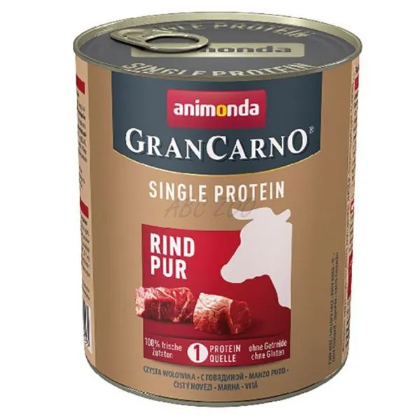 Animonda GranCarno Single Protein este o hrană la conservă, monoproteică cu carne de vită pentru câini adulți (1-6 ani) de toate rasele.