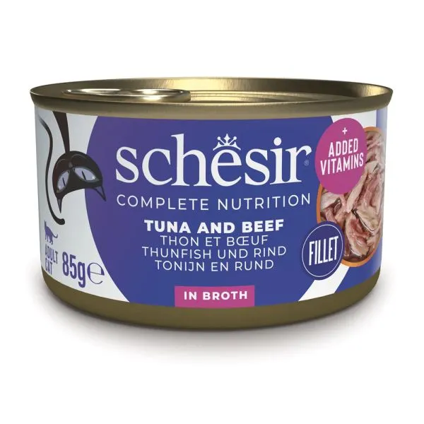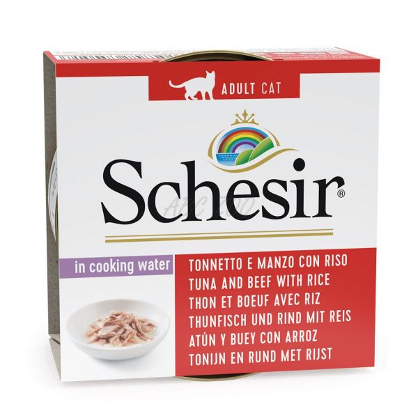 Schesir cat ton și vită cu orez în suc propiu 85 g