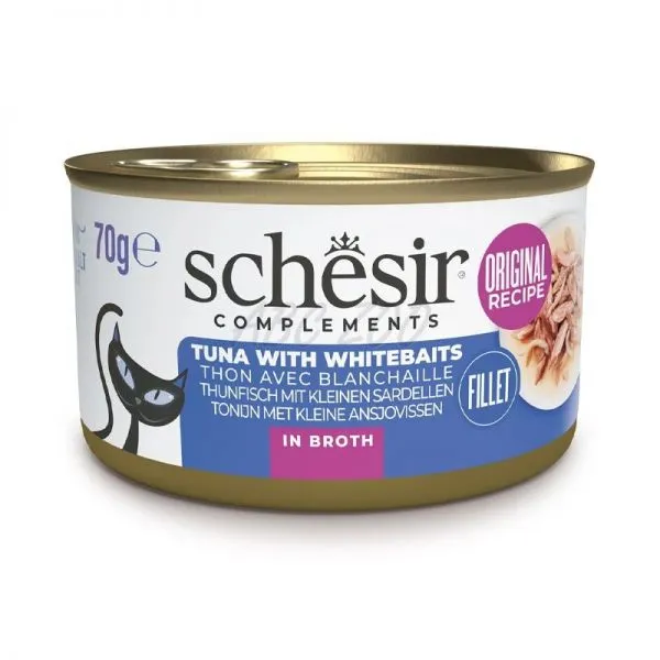 Schesir este o conservă delicioasă pentru pisici adulte, plină de ton cu hamsii în suc propriu.