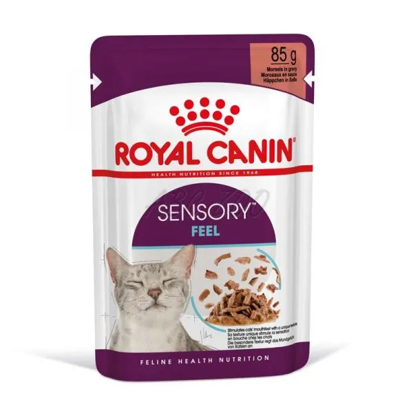 Pentru a răspunde preferințelor individuale ale fiecărei pisici, Royal Canin® Sensory Feel este, de asemenea, disponibil cu bucăți în jeleu pentru un gust optim și diversitate de texturi. Alte produse din gama Royal Canin® Sensory includ Sensory Taste și Sensory Smell, fiecare având propria compoziție atrăgătoare, care stimulează apetitul pisicii dumneavoastră și creează o experiență de hrănire bogată din punct de vedere senzorial.