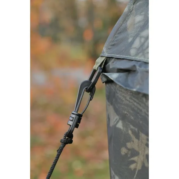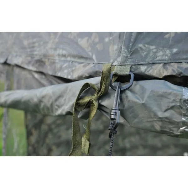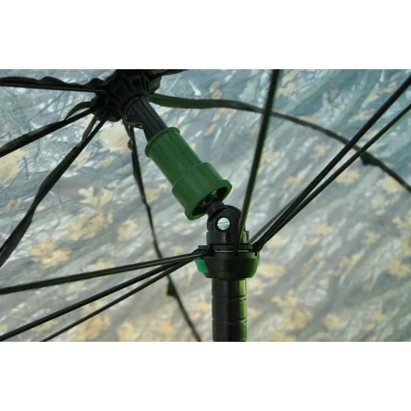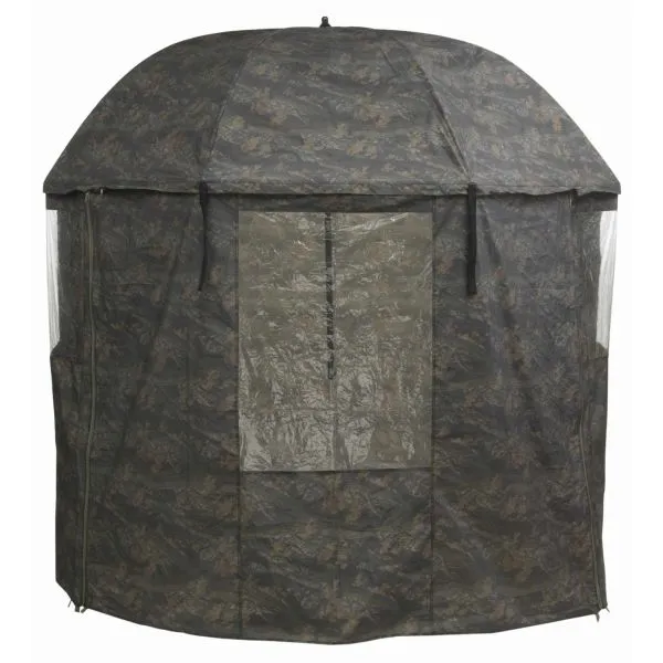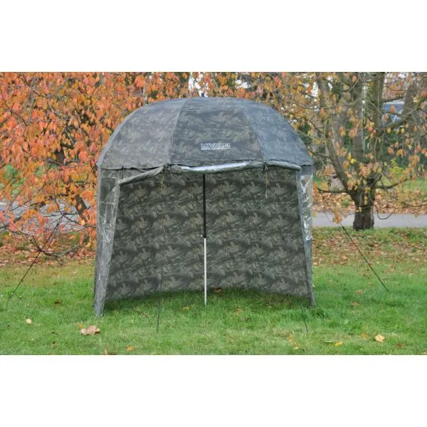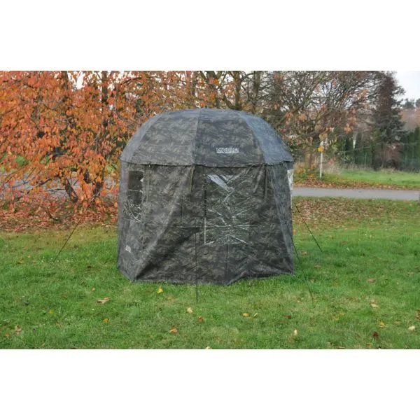 O umbrelă cu acoperiș lateral și frontal detașabil (uşă). Vine cu un geam frontal și două laterale. Învelișul este fabricat dintr-un material ușor, dar 100% impermeabil, „acoperit cu cauciuc”, într-un design unic de camuflaj, cu legături sudate. Bastonul de umbrelă întărit asigură o stabilitate deosebită.