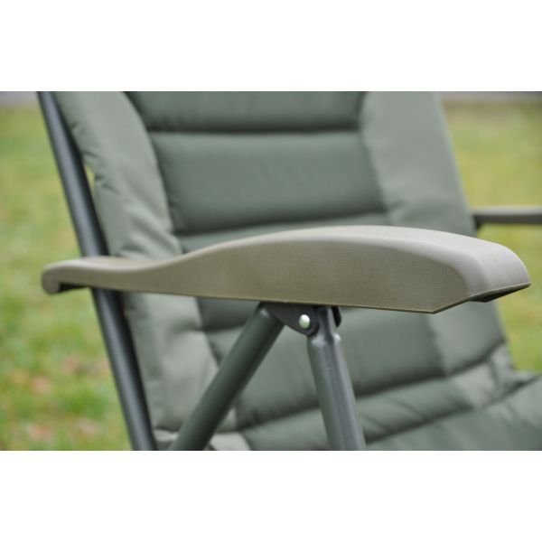 Un scaun bine conceput, popular și luxos, cu o saltea cu formă unică și o pernă groasă, căptușită, din neopren. Cerințele clienților MIVARDI sunt satisfăcute deoarece acest scaun popular vine cu patru picioare telescopice. Picioarele sunt echipate cu un sistem de blocare fiabil și picioare contra noroiul, pentru a preveni scufundarea lor în pământ moale. Construcția cadrului este extrem de stabilă, surprinzător de ușoară și puternică (capacitate de greutate 160 kg). Scaunul are un mecanism de înclinare ușor după ridicarea suporturilor de mână.