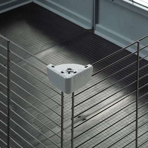 Marginile exterioare ale colțului cuștii sunt asigurate cu șipci de plastic culoarea barelor este neagră realizate din componente deloc periculoase Dimensiunea golului dintre grile: 2,2 cm Dimensiuni: 107,5 x 72 x 50 cm (l * l * h)