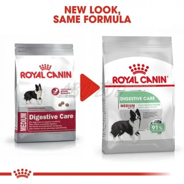 Nu sunt doar vorbe în vânt, hrana ROYAL CANIN® Digestive Care Medium optimizează calitatea scaunului, cel mai bun dovadă a unei digestii bune, în până la 91% din cazuri. Asta înseamnă că hrana ROYAL CANIN® Digestive Care Medium chiar funcționează.
