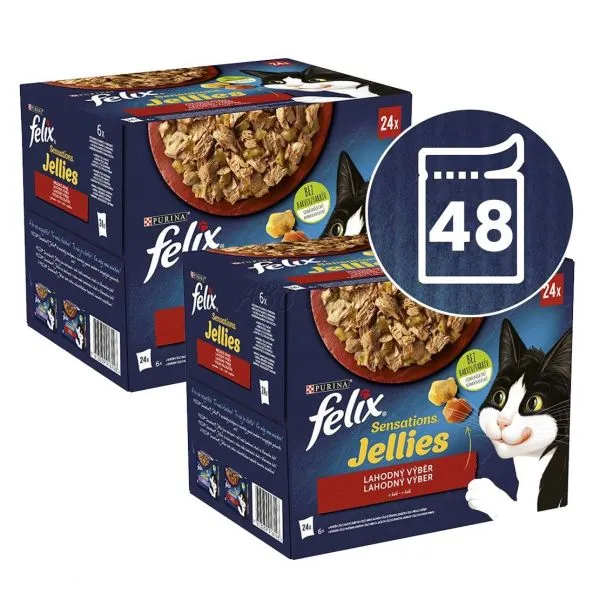 Fiecare mâncare FELIX Sensations Jellies conține bucăți delicate care să mulțumească pisica ta, servite în diferite arome pentru un gust excepțional și o aromă ispititoare. În același timp, sunt o sursă de acizi grași omega-6 și au combinația potrivită de vitamine pentru a-ți menține pisica plină de energie și gata de năzbâtii! Sunt pline de bunătăți și vor satisface 100% din nevoile zilnice ale pisicii tale atunci când sunt hrănite conform instrucțiunilor de hrănire. Asta nu este tot! Jeleurile FELIX Sensations sunt disponibile într-o varietate de combinații de arome în sosuri irezistibile! Așadar, dacă ai norocul să ai o pisică senzațională precum FELIX, satisface-i dragostea pentru diversitate în fiecare zi cu FELIX Sensations Jellies! FELIX este pur și simplu irezistibil!