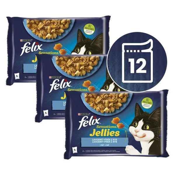 FELIX Sensations Jellies pliculețe, selecție delicioasă de pește în gelatină 12 x 85 g
