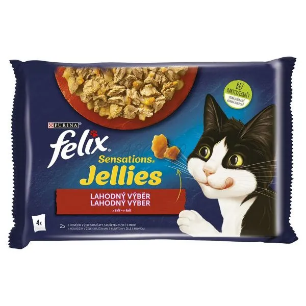 FELIX® Sensations® Jellies este o gamă de hrană irezistibilă realizată din ingrediente de înaltă calitate care miros și, bineînțeles, au gust delicios. Fiecare hrană FELIX Sensations Jellies conține bucăți fine pentru a satisface pisica, poate fi servită în diverse arome și cu diverse sosuri pentru un gust excepțional și aromă tentantă. În același timp reprezintă o sursă de acizi grași omega 6 și au combinația corectă de vitamine pentru a menține pisica plină de energie și gata pentru joacă! Este plină de bunătăți și va satisface 100% din nevoile zilnice ale pisicii atunci când este servită în mod corespunzător. Și asta nu este tot! FELIX Sensations Jellies sunt disponibile într-o gamă largă de arome irezistibile și sosuri! Așadar dacă sunteți norocoși și aveți o pisică ca elix, satisfaceți-i dragostea pentru diversitate în fiecare zi cu FELIX Sensations Jellies! FELIX este pur și simplu irezistibilă!