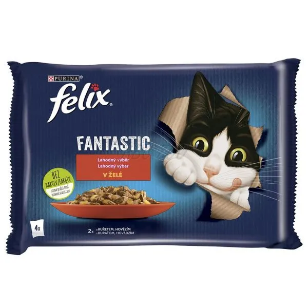 FELIX Fantastic este o gamă irezistibilă de hrană care arată, miroase și are gust delicios, așa cum ați găti acasă! Fiecare rețetă, realizată din ingrediente de calitate, conține bucăți delicate de jeleu, astfel încât să se poate mușca direct! În același timp sunt o sursă de acizi grași omega 6 și au o combinație de vitamine care îi vor da energie pisicii și voință de viață! Sunt pline de bunătăți și va satisface 100 % nevoile zilnice necesare ale pisicii atunci când se respectă instrucțiunile de alimentare. Asta nu e tot! FELIX Fantastic este disponibilă într-o varietate de rețete delicioase în sos de gelatină pentru a satisface dragostea pisicii pentru varietatea de gusturi. Sunt într-adevăr delicioase FELIX Fantastic este pur și simplu irezistibil!
