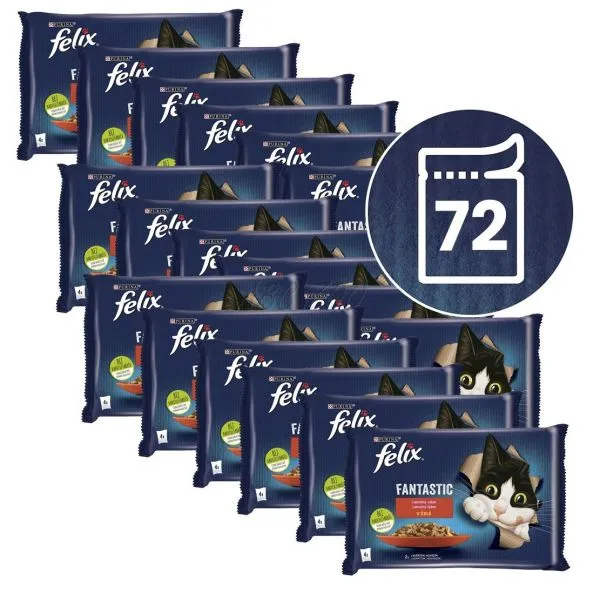 FELIX Fantastic pliculețe cu carne de vită și pui în gelatină 72 x 85 g