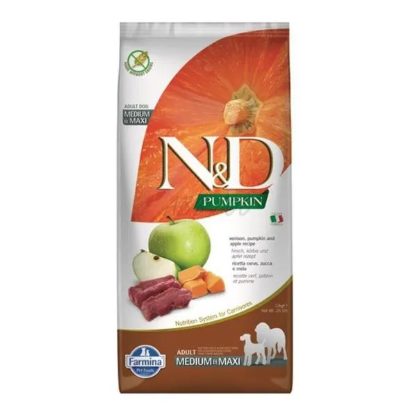 Farmina N&D dog GF PUMPKIN adult Medium & Maxi, carne de vânat & măr 12 kg