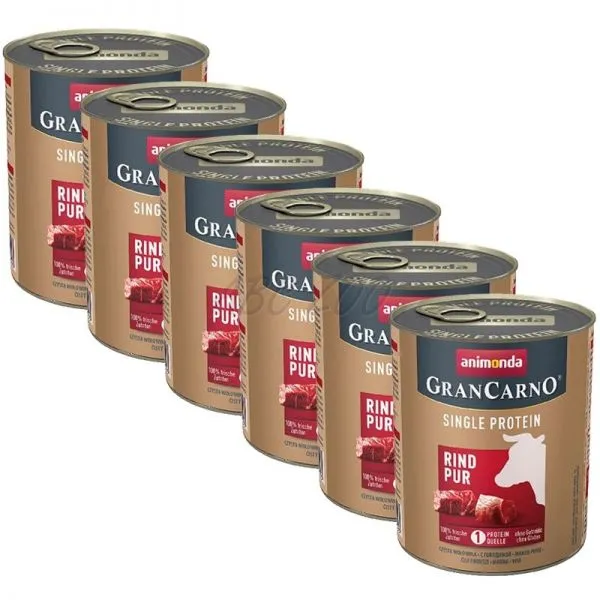Animonda GranCarno Single Protein este o hrană la conservă, monoproteică cu carne de vită pentru câini adulți (1-6 ani) de toate rasele.