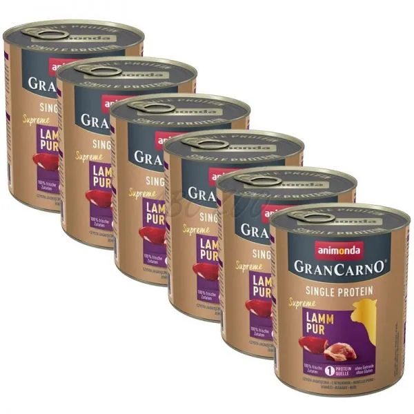Animonda GranCarno Single Protein este o hrană la conservă, monoproteică cu miel pentru câini adulți (1-6 ani) de toate rasele.