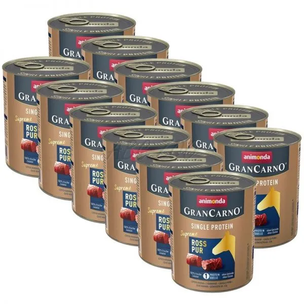 Animonda GranCarno Single Protein este o hrană la conservă, monoproteică cu carne de cal pentru câini adulți (1-6 ani) de toate rasele.