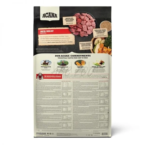 ACANA Classic red este propoționată nutrițional și biologic cu un conținut de carne de miel, carne de vită și carne de porc potrivită pentru câini de orice vârstă și talie.