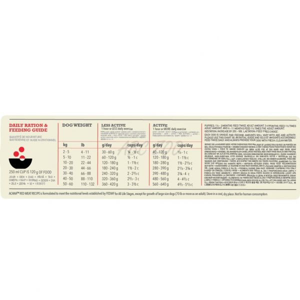 Ingrediente: Carne de vită crudă (16%), carne de miel deshidratată (15%), orz perlat, mazăre integrală, crupe de ovăz, grăsime de porc (8%), carne de porc deshidratată (8%), ovăz integral, fibre de năut, carne de porc crudă (2%), ulei de pește (1%), clorură de potasiu, alge marine uscate, sare, rădăcină de cicoare uscată, dovleac proaspăt întreg, dovleac butternut întreg proaspăt, morcovi întregi proaspeți, mere întregi proaspete, pere întregi proaspete, dovlecei întregi proaspeți, varză proaspătă, spanac proaspăt, frunze proaspete de sfeclă roșie, frunze proaspete de sfeclă roșie, afine întregi, afine întregi, mușcate întregi, turmeric, ciulin de lapte, rădăcină de brusture, lavandă, rădăcină de hibiscus, măceșe.