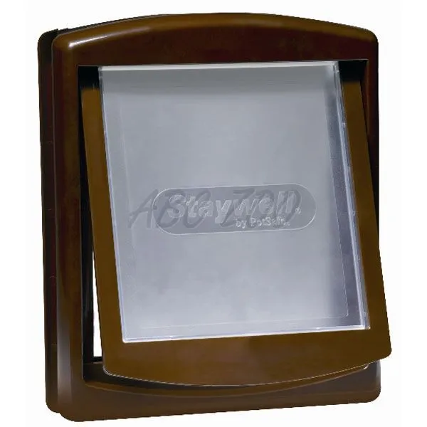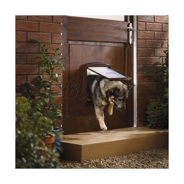Uşă pentru câini şi pisici, de culoare maro, poate fi montată în lemn, zid de cărămidă, PVC, metal.