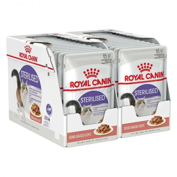 Pentru a satisface gusturile cât mai multor pisici, hrana ROYAL CANIN® Sterilised este disponibilă și sub formă umedă, ca o pastă delicioasă, și ca hrană uscată cu crocante și gustoase bucățele. Dacă vă gândiți la o alimentație combinată, urmați pur și simplu instrucțiunile noastre pentru a vă asigura că pisica dumneavoastră primește cantitatea corectă de hrană uscată și umedă.