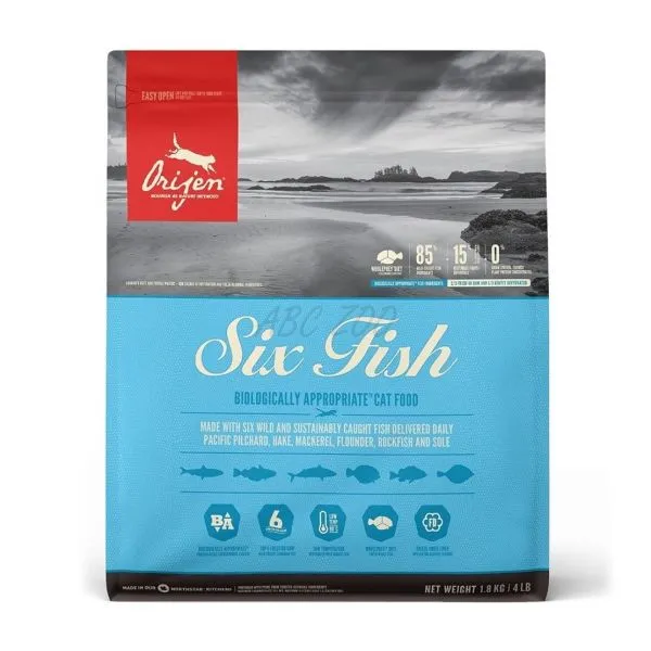 Orijen este o hrană care conține pește, prins în apele reci din Pacificul de Nord canadian, care este plin de nutrienți și gust deosebit, pentru pisicile de toate rasele și de toate vârstele.