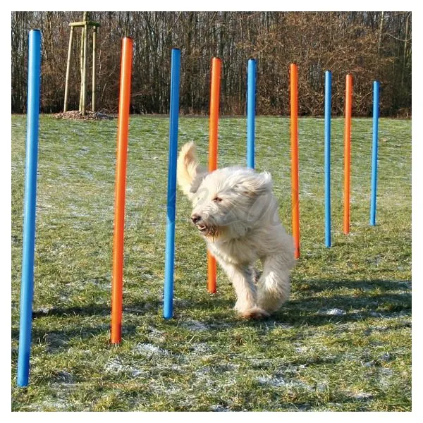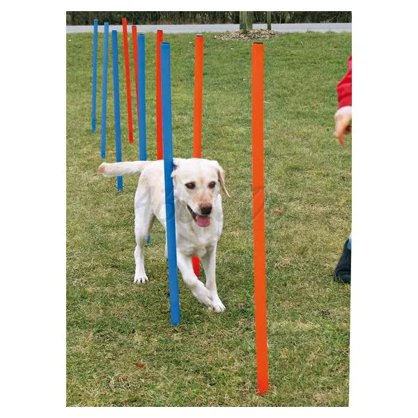 Obstacol slalom de agilitate cu o varietate de setări, potrivit pentru câini.