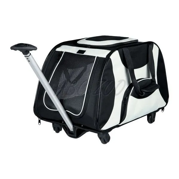 Geantă tip troler pentru câini sau pisici, cu mâner reglabil.