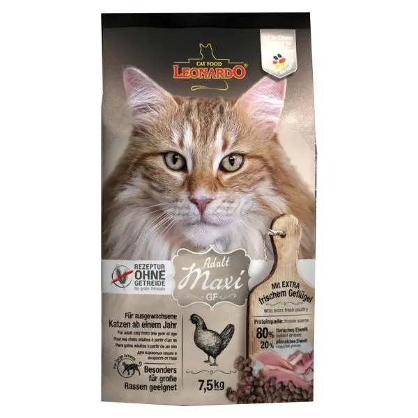 Această hrană de origine germană este potrivită pentru pisici adulte de talie mare ce suferă de intoleranță la cereale.