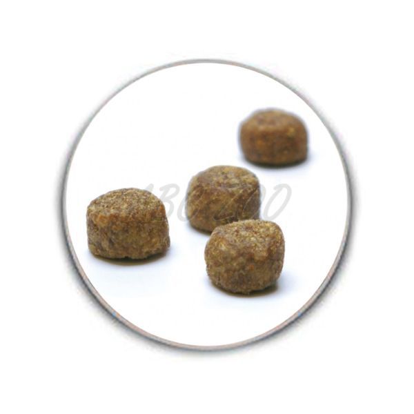 Carne de pui (uscată) (min. 30%, din care min. 20% carne de rață), orez (min. 25%), grăsime de pui, malț de orez (min.4%), creveți krill (uscate), amidon de cartofi, ouă integrală (uscată), drojdie de bere, ficat de pui (hidrolizat), hering, pâine de Sfântu Ioan, sămânță de strugure (ulei pur), sămânță de in, amidon pregelatinizat, clorură de sodiu, fructo-oligozaharide, extract de drojdie.
