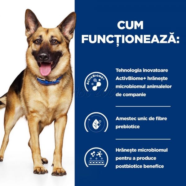 Este important să continuați hrănirea cu PRESCRIPTION DIET Gastrointestinal Biome Digestive Care hrană pentru câini pentru a ajuta la menținerea sănătății digestive a câinelui dvs., chiar și după ce simptomele se ameliorează. Consultați-vă cu medicul veterinar pentru mai multe informații despre modul în care hrana PRESCRIPTION DIET vă poate ajuta câinele să se bucure în continuare de o viață fericită și activă.