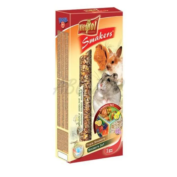 Baton Vitapol Smakers pentru rozătoare - 1x arahide, 1x fructe de pădure, 1x peleţi de porumb. Mai multe detalii