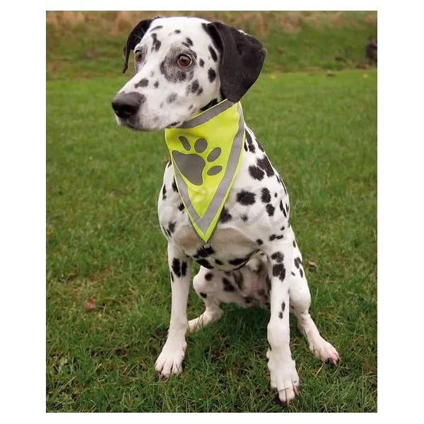 Eşarfă reflectorizantă pentru câini, cu imprimeu şi sistem de închidere rapid cu arici. Eşarfa nu zgârie sau dă iritaţii câinelui dumneavoastră.