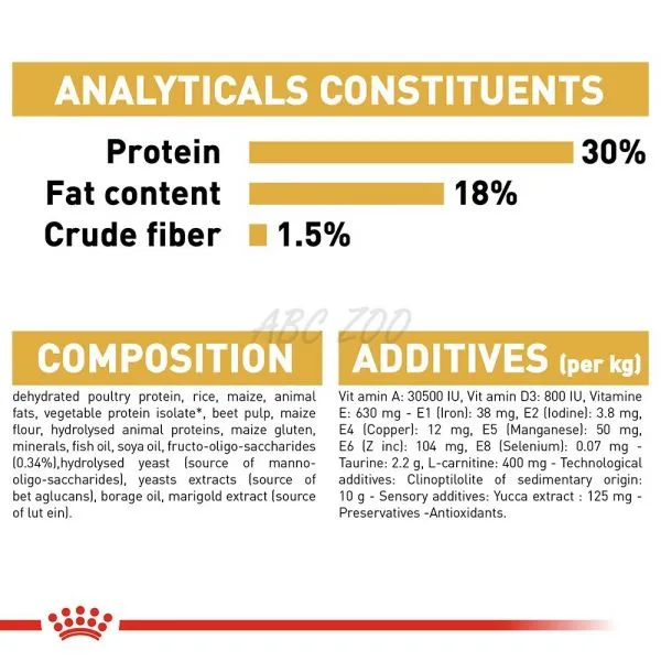 CAVALIER KING CHARLES JUNIOR conține nutrienți care sunt necesari pentru menținerea funcției cardiace în parametri corespuzători printr-un conținut adaptat de minerale, EPA & DHA; taurină, carnitină și antioxidanți.