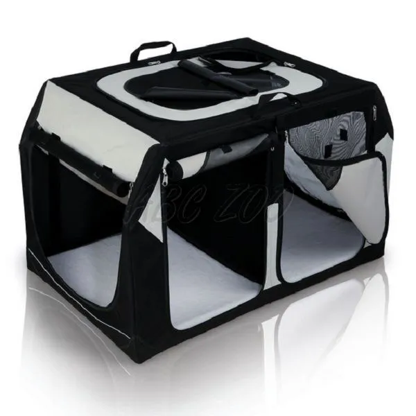 Cușcă pentru transport, realizat din poliester de înaltă calitate, datorită în special ramei metalice stabile de calitate superioară. Deschizibil în 4 părți. Pereții posteriori asigură o ventilație adecvată. Partea superioară cu plasă poate fi acoperită, ca animalul dvs. să se simte în siguranță. Velcroul de pe partea inferioară previne deraparea. Conține rampă demontabilă, care protejează bara de zgârieturi. Cușca are și locaș pentru sticlă și este căptușită cu material de pluș.