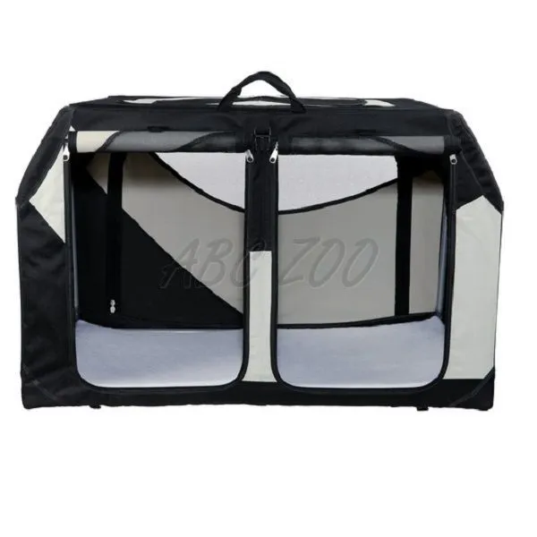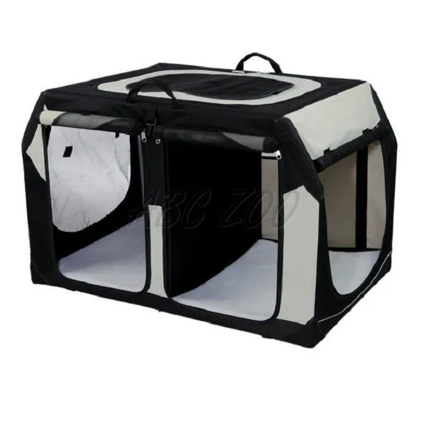 Cușcă dublă utilizabilă pentru transportarea câinelor sau a pisicilor, cu ramă metalică, în culoare negru-gri. Mai multe detalii