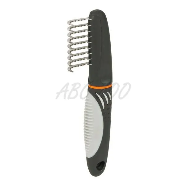 O perie cu dinții strâmbi și prindere de cauciuc potrivită pentru câinii și pisicile cu părul lung.