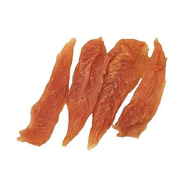 Supliment alimentar pentru câini Ontario Soft Chicken Fillet XXL în formă de fâşii suculente de carne de pui.